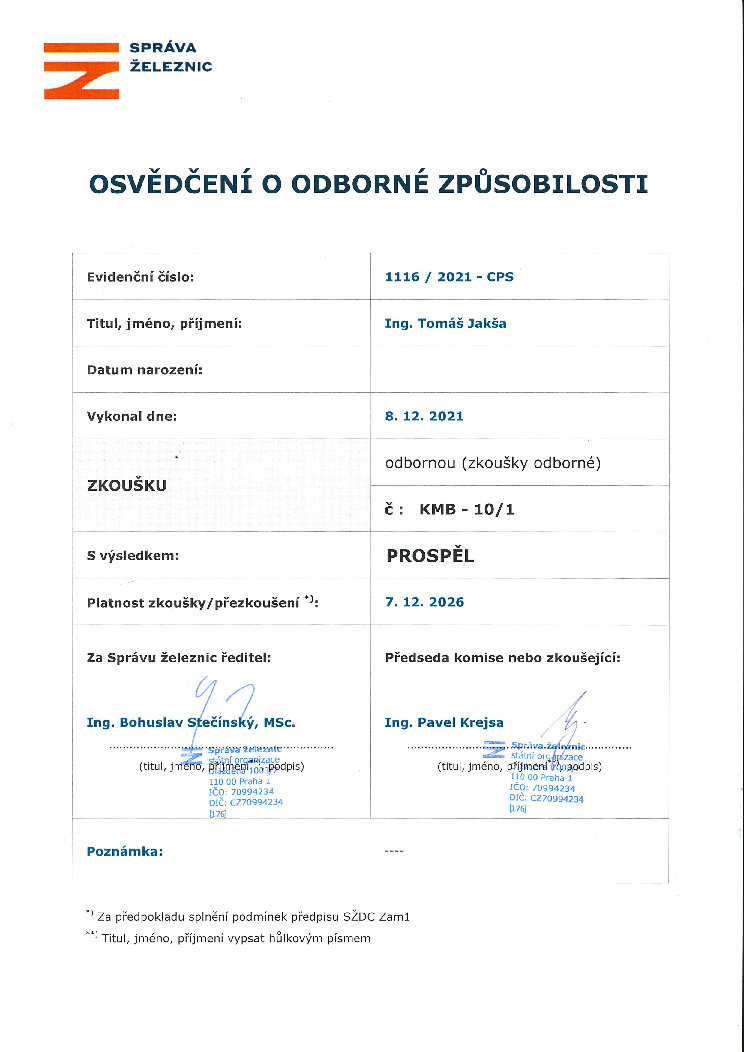 • Spolupráce při stanovení času potřebného k bezpečnému provádění prací